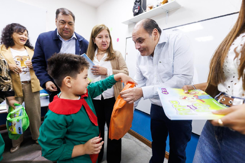 El intendente de la Capital, Gustavo Saadi, junto a autoridades educativas, recorrió las escuelas municipales para concretar una nueva entrega de kits escolares y libros de inglés destinados, por primera vez, a los alumnos de todos los niveles del Sistema Educativo Municipal (SEM). La medida alcanzó a más de 2.200 estudiantes de las instituciones N°1 "El Principito", N° 2 "Juan Oscar Ponferrada" y N°3 "Gustavo Gabriel Levene".